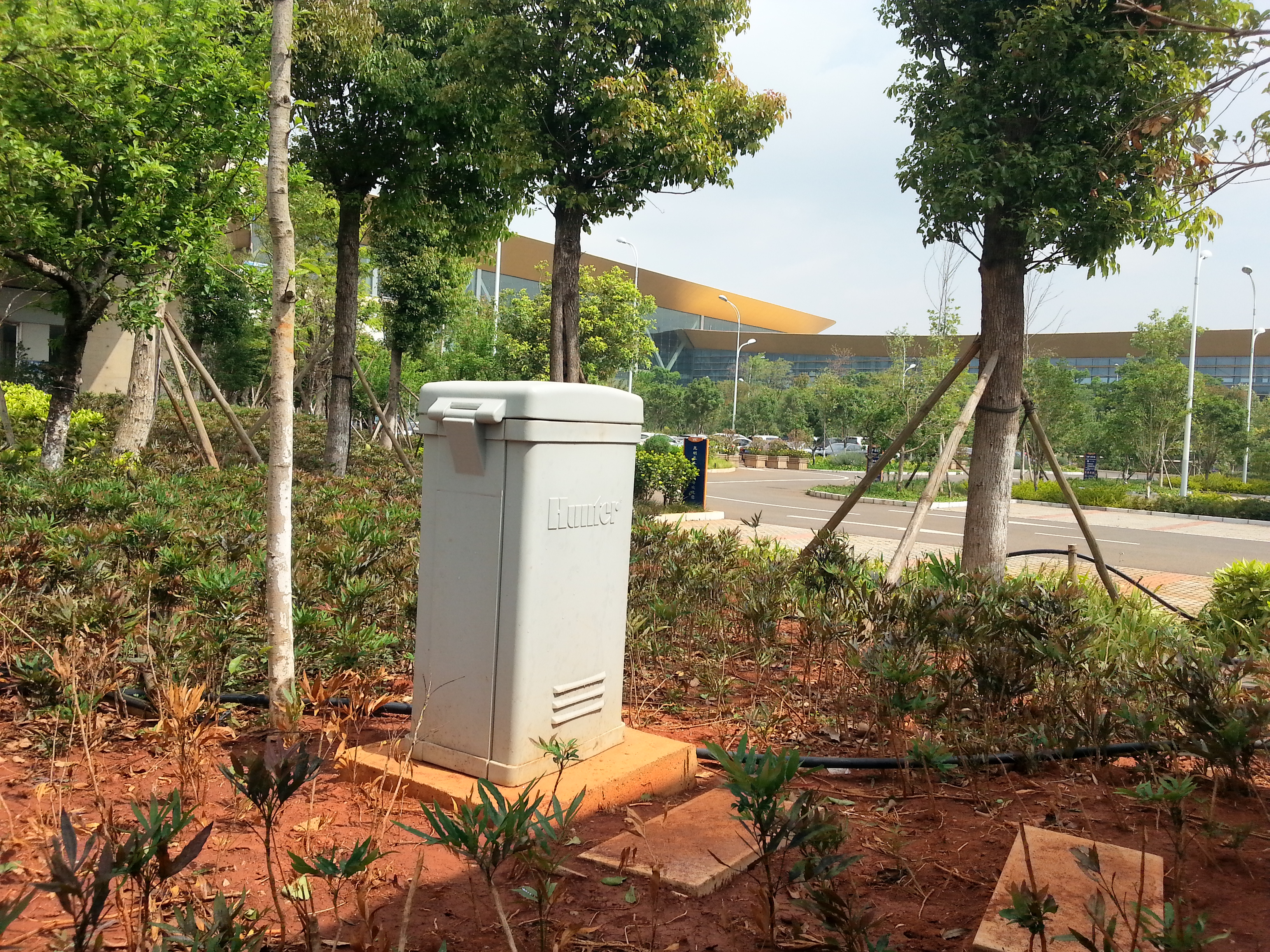 項(xiàng)目主要使用了HUNTER旋轉(zhuǎn)噴頭PGP-04、PGP-12噴頭體PROS-04、PROS-12配MP系列旋轉(zhuǎn)射線噴嘴、電磁閥PGV系列、控制系統(tǒng)采用了較先進(jìn)的ACC-99D-PP配備解碼器ICD-100、配套使用了RAIN-CLIK雨量傳器、ET-SYSTEM+ET-WIND氣候傳感器、SOIL-CLIK土壤濕度傳感器、FLOW-CLIK流量傳感器、并配備ROAM-XL-KIT遙控器一套。
