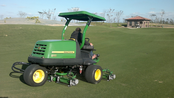 為打造頂級(jí)錦標(biāo)賽事球場(chǎng),從設(shè)計(jì)建造至今,覽海國際高爾夫俱樂部配備了綠友提供的草坪養(yǎng)護(hù)設(shè)備,一應(yīng)俱全。高端上檔次的配置,為日后草坪的養(yǎng)護(hù)提供了堅(jiān)強(qiáng)的保障,其中美國迪爾公司的8000E混合動(dòng)力坐騎式五聯(lián)球道剪草機(jī)就成了其中的一大“功臣”。18英寸QA5刀組,兼?zhèn)湎冗M(jìn)的油電混合技術(shù),起早摸黑,征服了連綿起伏的球道,贏得了俱樂部草坪總監(jiān)及其團(tuán)隊(duì)的一致肯定。馳騁美巡,盼其再續(xù)輝煌征程。