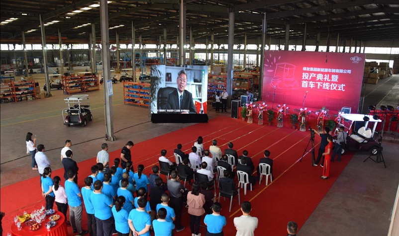 5月5日上午,在一串喜慶的鞭炮聲中,綠友集團(tuán)新能源車(chē)輛有限公司投產(chǎn)典禮暨首車(chē)下線儀式正式開(kāi)始。