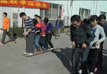 夾乒乓球項目,妙趣橫生。該項目每隊10人,一人一雙筷子,參賽選手將乒乓球用筷子夾好,快速跑至5米之外,將球扔進塑料籃里,1分鐘之后乒乓球數(shù)目多的隊獲勝。比賽中,有的選手乒乓球總是滑掉,夾不起來,大家都著急;有的夾著球都快跑到籃筐面前了,一個不小心球又掉了,大家一陣惋惜;有的運動員的眼睛都瞪得圓圓的,生怕球掉了,表情十分可愛,大家一陣歡笑;有的健步如飛球穩(wěn)穩(wěn)當當,大家齊聲稱贊。在這一分鐘的計時賽中,裁判嚴格按照比賽的規(guī)程,絕不多算一個不合格的球,嗓子喊啞了,也絲毫沒有懈怠。