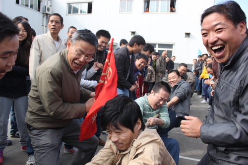 拔河比賽是最考驗團隊凝聚力的項目了。裁判員一聲令下,所有的選手勁往一處使,勒緊麻繩不放松,在強有力的“1、2、3”的口號下,每個參賽者使出九牛二虎之力,把繩子往自家起點線邊拉。只見繩索中心的紅線忽而左忽而右,參賽選手們絲毫不放松,腿彎了、差點就坐在地上了,大家又一股力量地往回拉。圍觀的同事們急得直跺腳,嘴上喊著“加油、加油”,手還一直往一邊“推”,好像自己也在拉著比賽繩一樣。在這場力量與意志的比拼中,拓寶二、營銷二部、草坪灌溉聯(lián)合組奪得了最后的勝利。