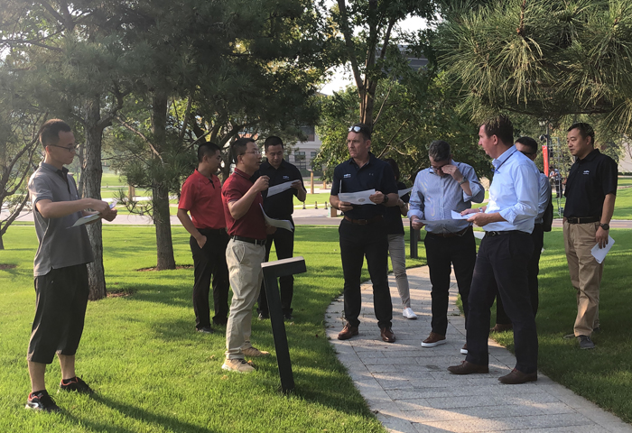 先正達專業(yè)環(huán)境部草坪與園林業(yè)務全球市場總監(jiān)Mr? Mark、公共衛(wèi)生全球業(yè)務總監(jiān)Mr? Andy、亞太區(qū)業(yè)務總監(jiān)Mr? Mick、中國區(qū)業(yè)務總監(jiān)端木瑞康先生以及中國區(qū)草坪與園林業(yè)務經(jīng)理潘全山先生、中國區(qū)市場經(jīng)理楊春明先生也一同訪問了綠友集團。