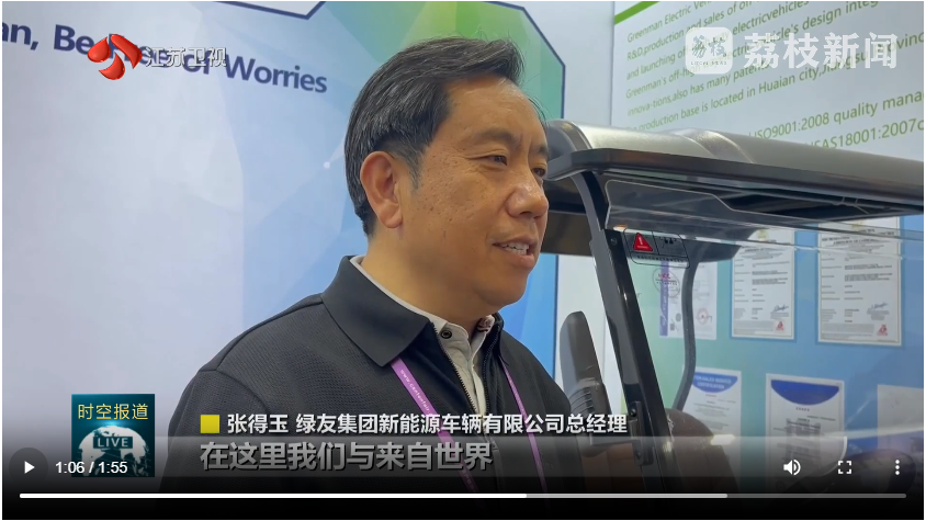 江蘇衛(wèi)視電視臺,采訪綠友集團(tuán)新能源車輛有限公司總經(jīng)理張得玉先生,他講到:在這里我們與來自世界的100多個(gè)國家和地區(qū)的采購商,面對面交流,這種深度的互動(dòng)溝通,讓我們迅速捕捉到國際市場的最新變化。