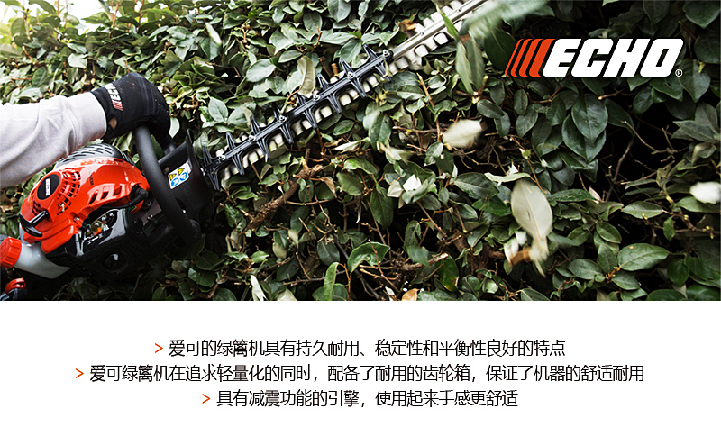 愛可的綠籬機持久耐用,穩(wěn)定性好。質(zhì)地輕薄的齒輪裝置,鋒利耐磨的刀片,以及具有減震功能的引擎共同構(gòu)成了愛可綠籬機的三大顯著特征。我們的綠籬機以符合人體力學(xué)為理念,讓您的工作省時省力,輕松高效。